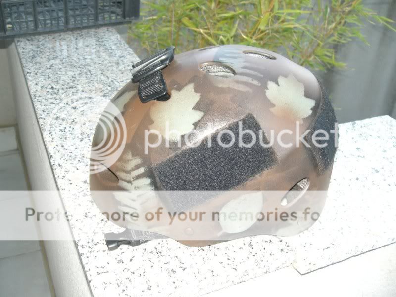 Buona l'idea di adattare il caschetto da bici, però non mi piace proprio la verniciatura, o meglio, io avrei evitato gli stencil con le foglie.