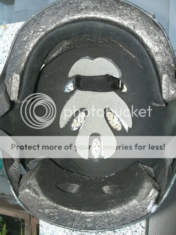 ciao a tutti, dopo aver provato svariati elmetti e non trovando la taglia giusta (tutti enormi :o ) ho deciso di farmelo da me ... ho comprato un caschetto da bici da bambino :shocked: (azzurro :oops: ) al supermercato e dopo averlo ripulito per bene (sverniciato col solvente e scartavetrato) gli ho dato una prima mano di nero opaco, poi una seconda mano, la finitura trasparente opaca e dopo di che mi sn divertito a renderlo mimetico con degli stencil e delle foglie...per quanto riguarda l'imbottitura interna, il caschetto risultava troppo alto e stretto così gli ho rifatto pure gli "interni" ...e dopo poco + di un anno di utilizzo (attraverso rovi, cespugli etc...) è rimasto ancora bene e senza graffi ...ma ecco a voi le foto...che ne pensate? 8-)