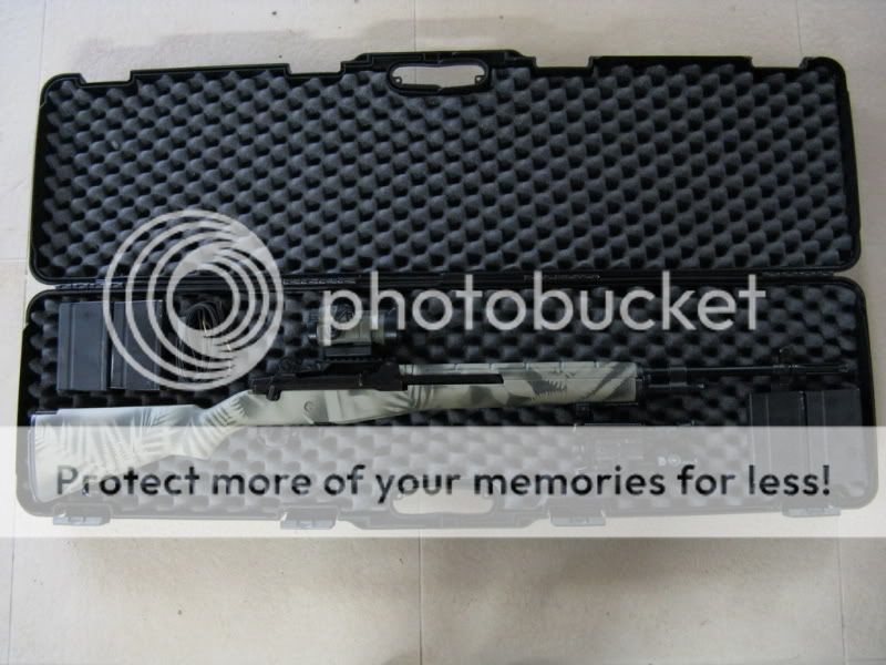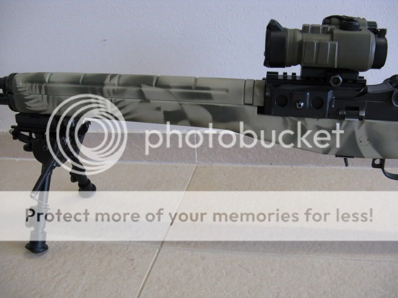 il mio bimbo che cresce *-* (da pittare modifiche su ottica in arrivo, poggiaguancia m25 in lavorazione artigianale) al momento è provvisto di silenziatore CA 110mm canna di precisione systema 510mm e hop up in silicone l'ottica è una 3-9x50 IR spero piaccia :)