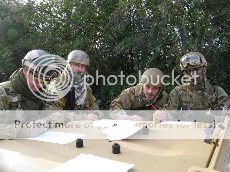 Vega ci illustra gli obj della missione: obj1 - recuperare un mazzo di chiavi, obj2 - trovare e disattivare in zona ostile un'ordigno esplosivo e riportarlo al PMA, obj3 - conquistare il PMA e la polveriera avversari, si decidono i canali radio e quindi..... si parte!!