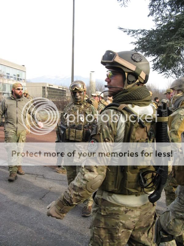 Il freddo è pungente, la brina ricopre la vegetazione. E' necessario utilizzare degli strati termici sotto la BDU altrimenti ci si congela. Però non importa, l'importante è che finalmente non piove!!! Mentre si percorre la strada che porta al campo di gioco è impossibile non soffermarsi sulla maestosità dell'anfiteatro di montagne innevate che si stagliano di fronte a noi. Sono certo che oggi sarà una giornata splendida ma un pensiero ai miei amici che sono in montagna a snowbordare non posso non farlo....!