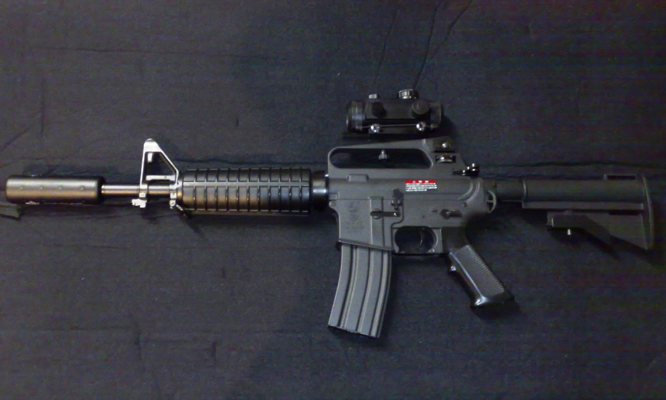 la foto qui sotto è vecchia infatti c'è un dot al posto dell'ottica e un silenziatore lungo che ho invece sostituito con un mk sniper corto.