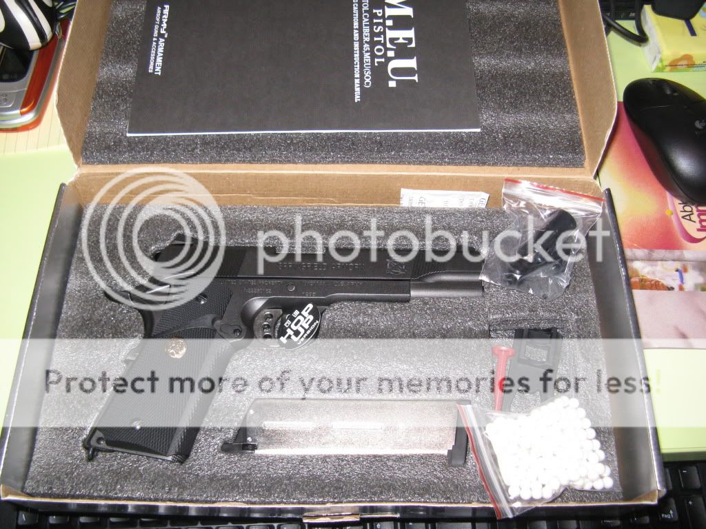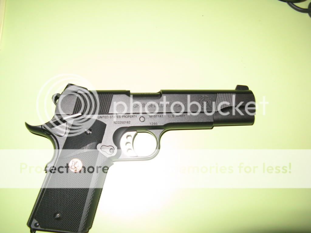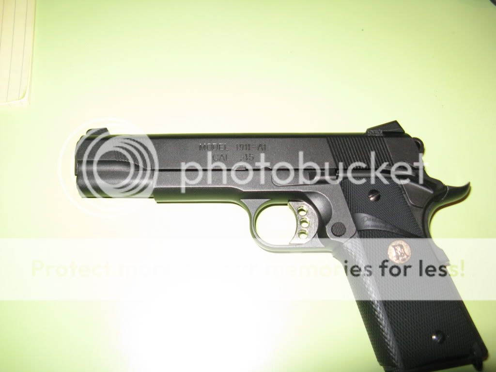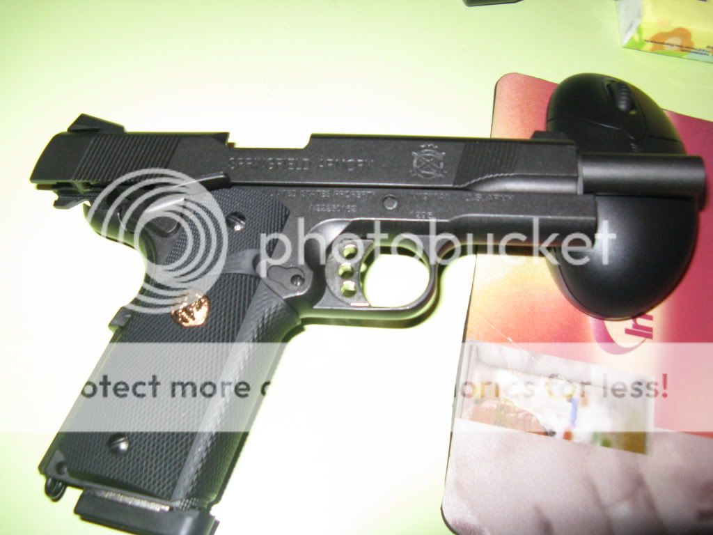 e infine la pistola. tutta in metallo, è veramente massiccia. la degna replica di una .45.