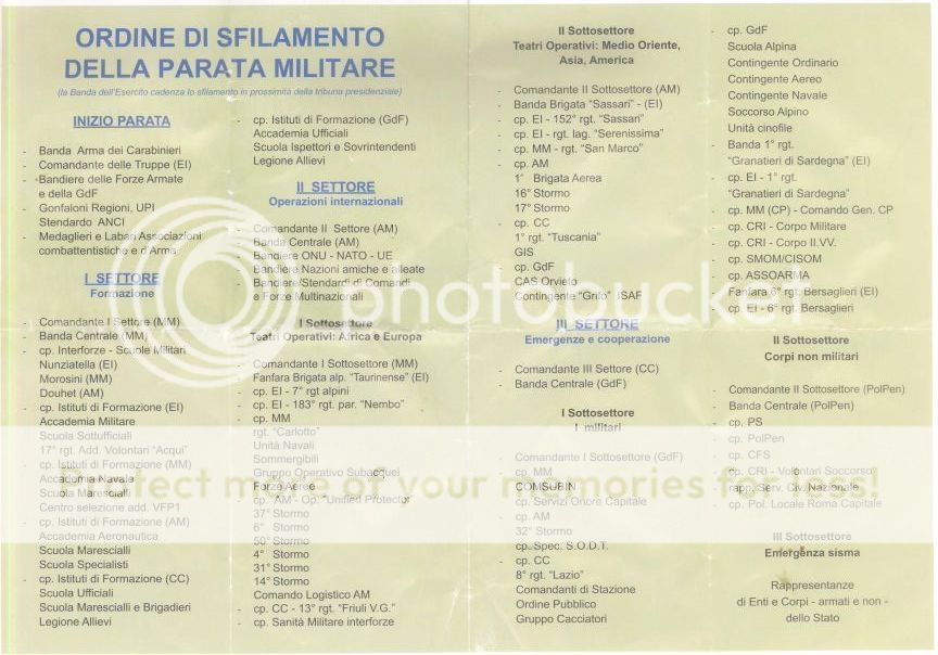 Ringrazio il Capo di Stato Maggiore della Difesa e mi scuso con voi per la non eccelsa qualità del servizio (ho fotografato tutti ... eccetto i Vigili Urbani del Comune di Roma): eravamo sul palco A 8 (sulla sinistra, all'altezza di via Cavour, per chi viene dal Colosseo e percorre i Fori Imperiali verso piazza Venezia) ed avevamo il sole in faccia.