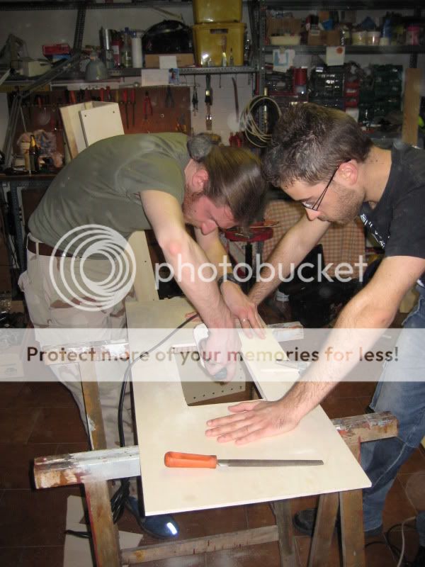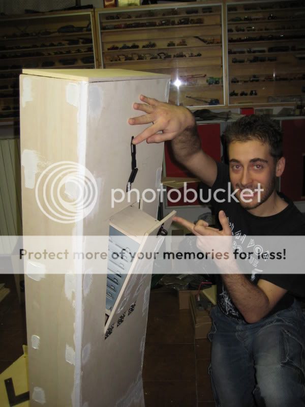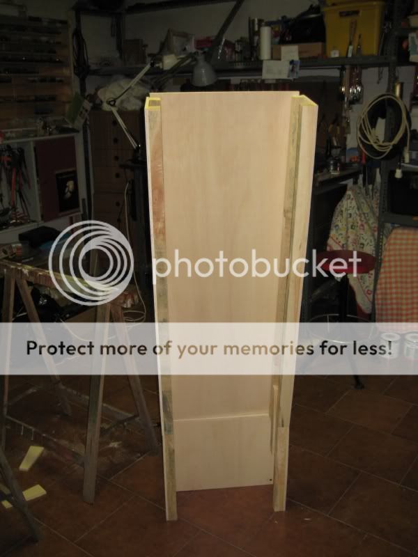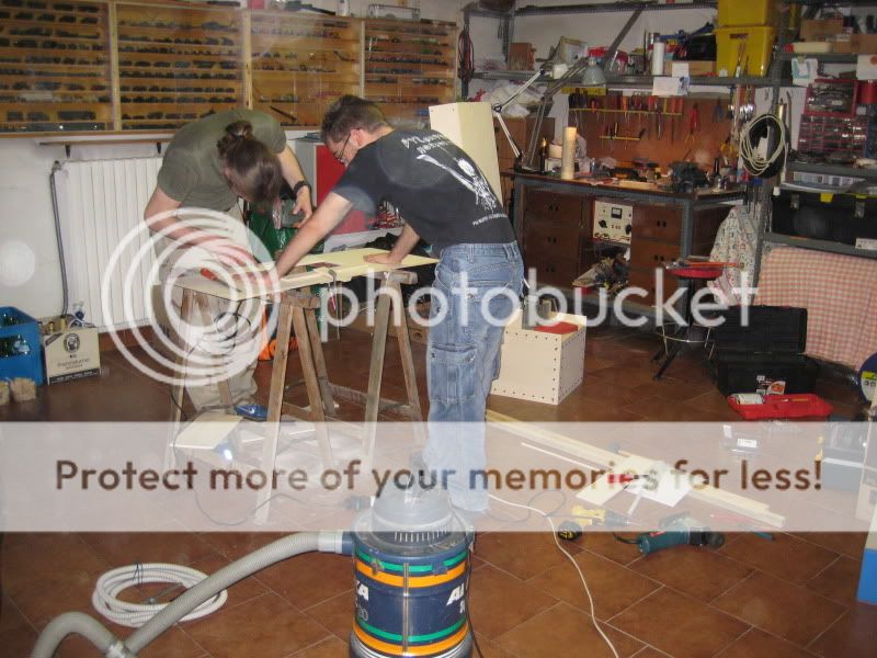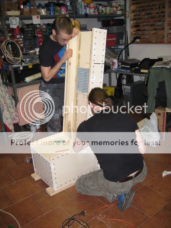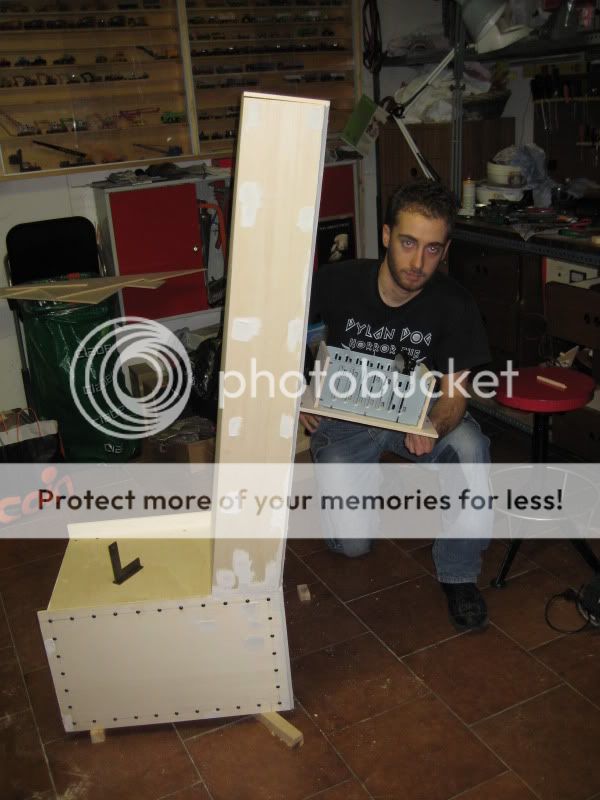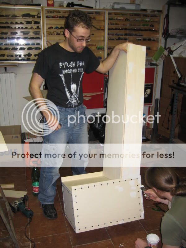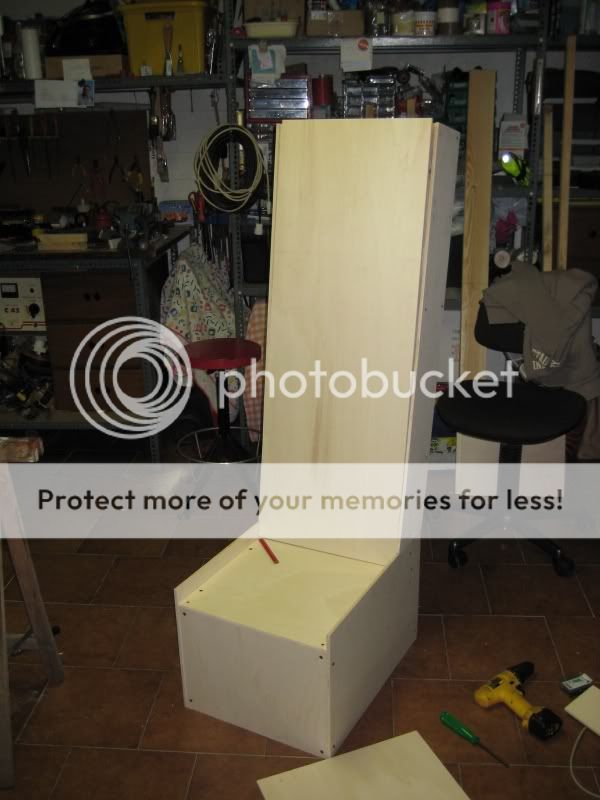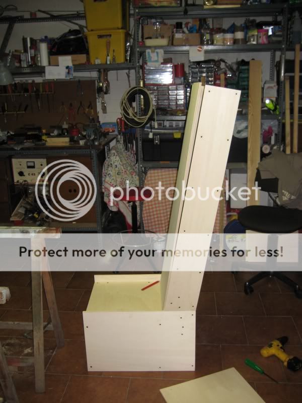 siamo partiti dalla base per poi proseguire con lo schienale, questa è una prima realizzazzione senza avvitare i pannelli dello schienale, messa insieme giusto per renderci conto delle dimensioni: