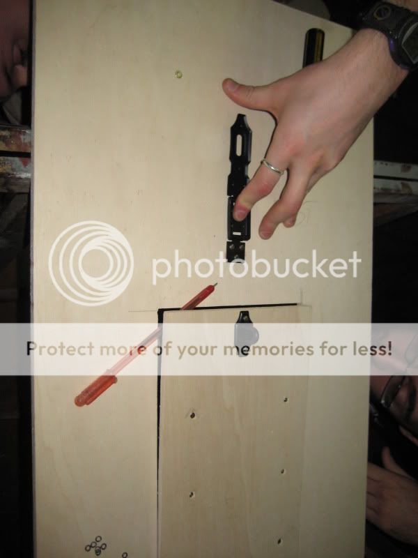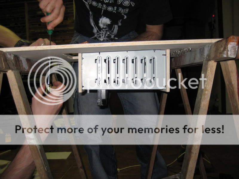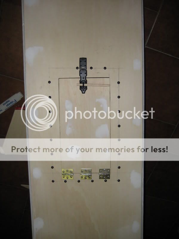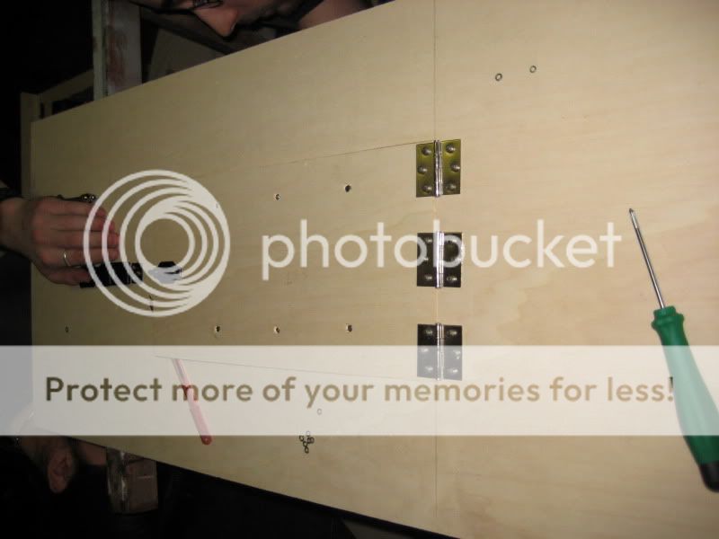 abbiamo quindi avvitato la gabbietta dell'hd al pezzo precedentemente tagliato e abbiamo posizionato 3 cerniere per far si che il vano si aprisse a compasso