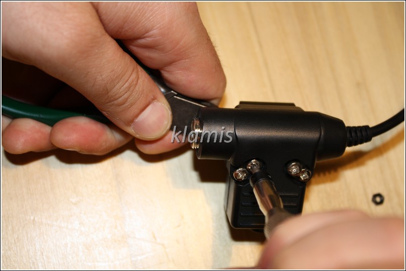 - con l'ausilio di una pinza autostringente (foto9), bloccate il lemo di modo che possiate dissaldare i terminali con facilità. dissaldiamo adesso il terminali dal lemo e dall'interruttore (foto10) ottenendo questo risultato (foto11)