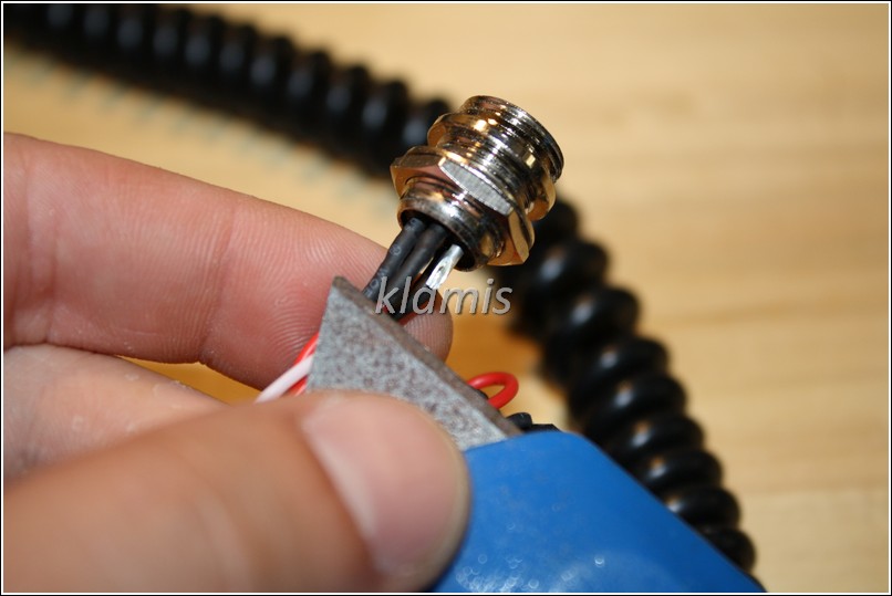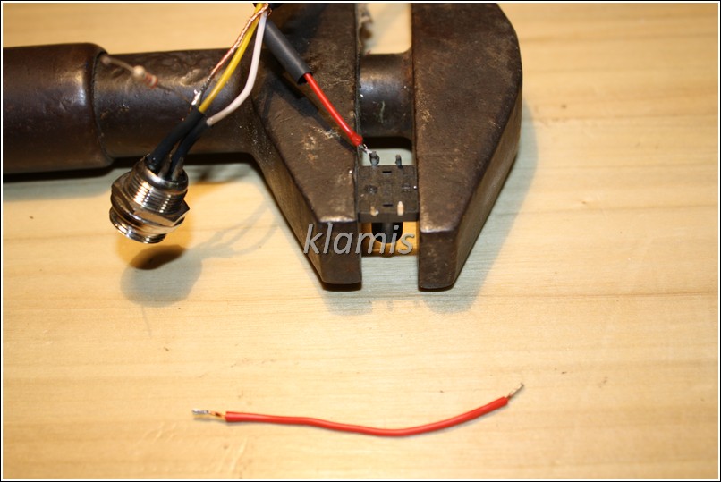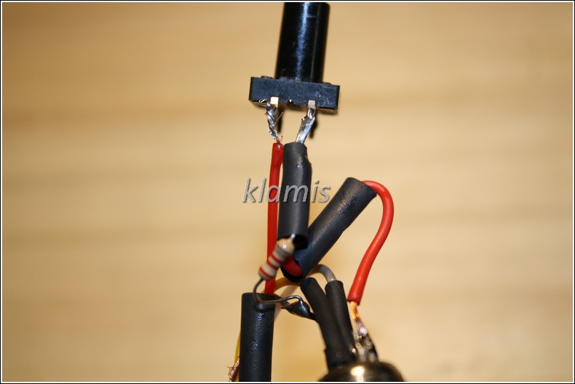 - tagliate dei pezzettini di termorestringente nero lunghi circa 20mm e infilateci dentro i cavi provenienti dalla ricetrasmittente (foto14).