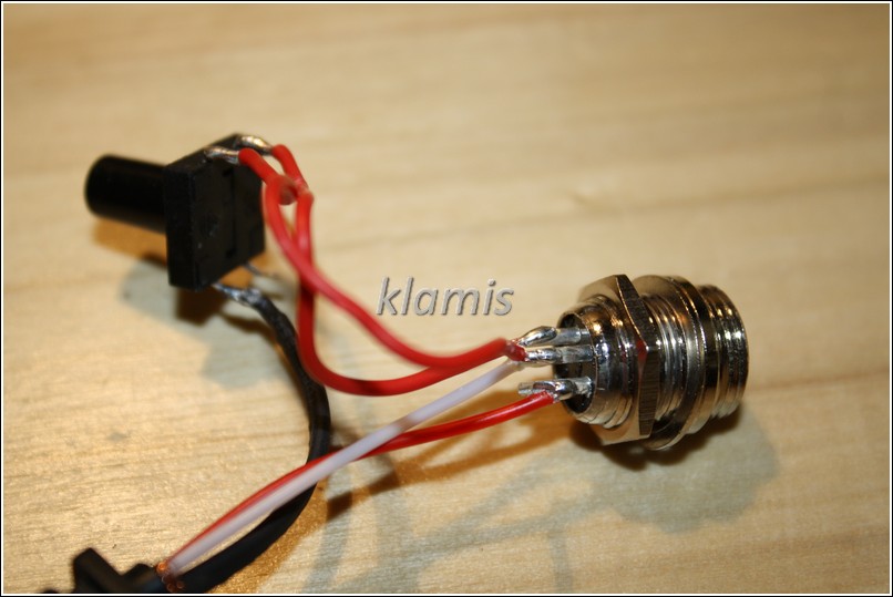- appuntate la resistenza all'estremità del cavo rosso proveniente dal lemo e infilatelo dentro a un pezzettino di termorestringente nero, dopodiche saldate (resistenza e filo rosso) al terminale dell'interruttore (foto18) ottenendo il risultato in foto19.
