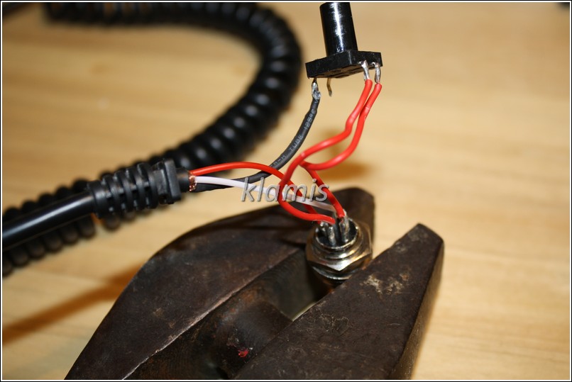 - passiamo adesso all'interruttore che generalmente ha la numerazione sotto ma è altresì possibile che non ci sai numerazione. tutto ciò che dovete sapere è che questo genere di interruttori va a coppie (acceso/spento) e sono sempre sullo stello lato. saldiamo il cavo proveniente dall'auricolare di colore rosso su un terminale dell'interruttore (nel caso della foto17 i 2 terminali vanno nei 2 soinotti superiori lasciando vuoti gli spinotti inferiori)