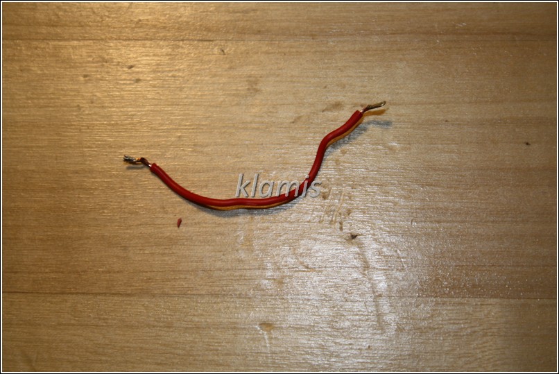 - togliamo il termorestringente di colore nero al cavo completamente ricoperto (foto12), scoprendo cosi 2 cavi, uno di colore giallo e uno di rame non ricoperto (foto13).