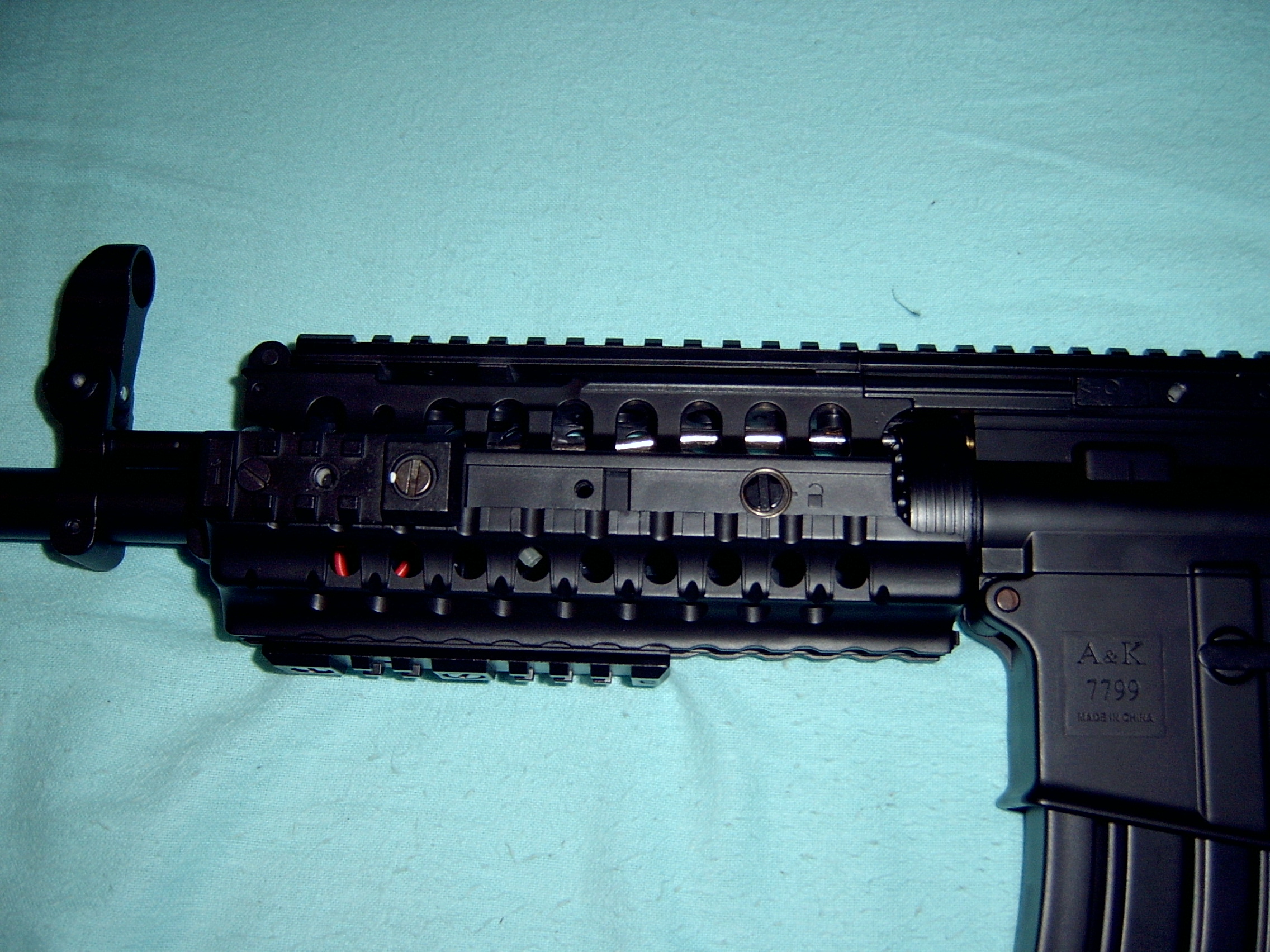 lo spegnifiamma, outerbarrel, il mirino anteriore collassabile, e il mirino posteriore sono in metallo.