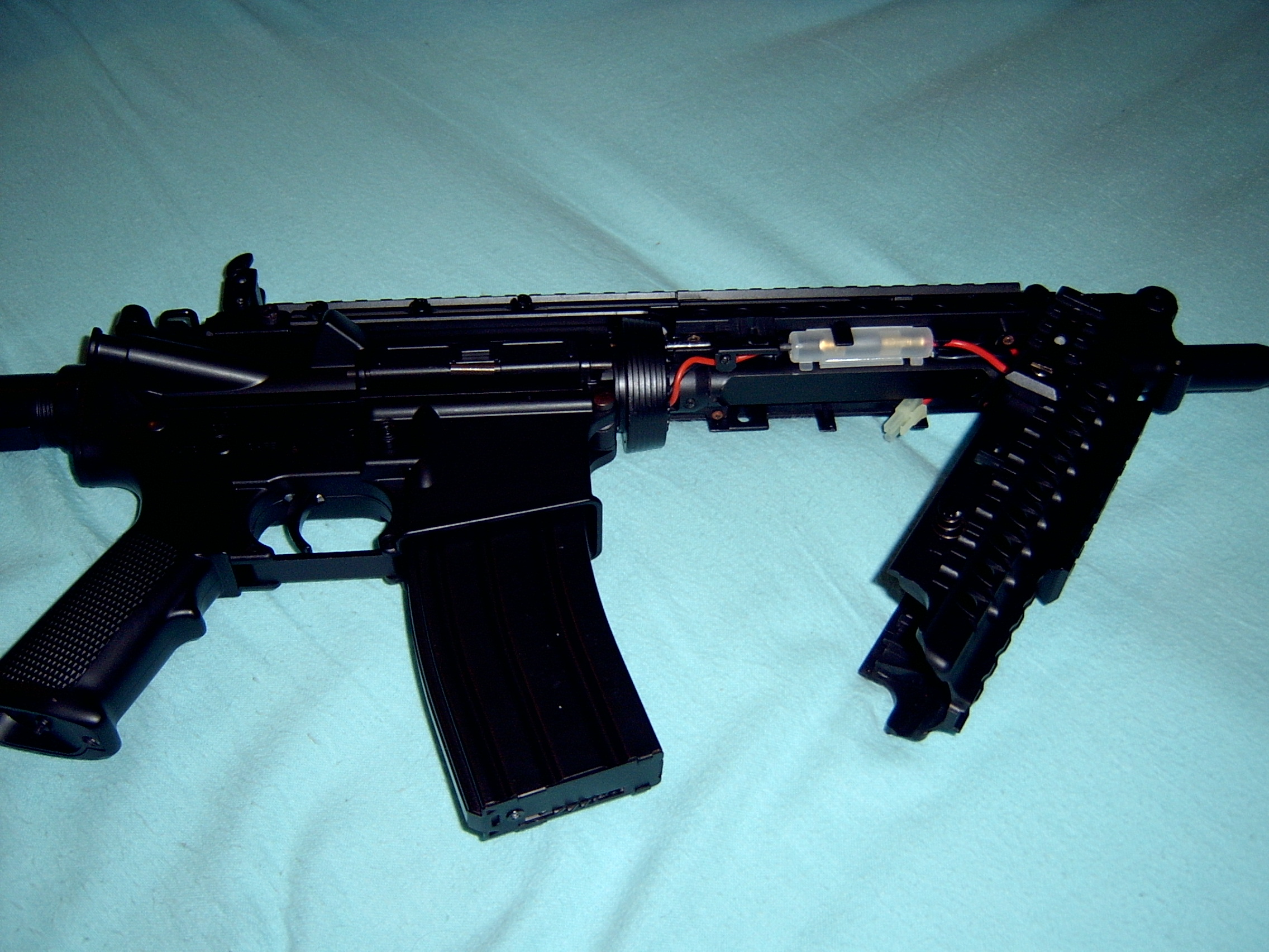 ho montato anche una 9,6 kan 1050 prima di smontarlo provando a sparare a vuoto e quel suono stanco che mi pareva di avvertire è stato dissipato d’incanto, la batteria di serie non è proprio il massimo (riprova di questo ho messo la 8,4 sul cqb e l’ho tolta subito… mi sembrava di sparare al rallentatore…), purtroppo non ho batterie 8,4 con cui compararla.