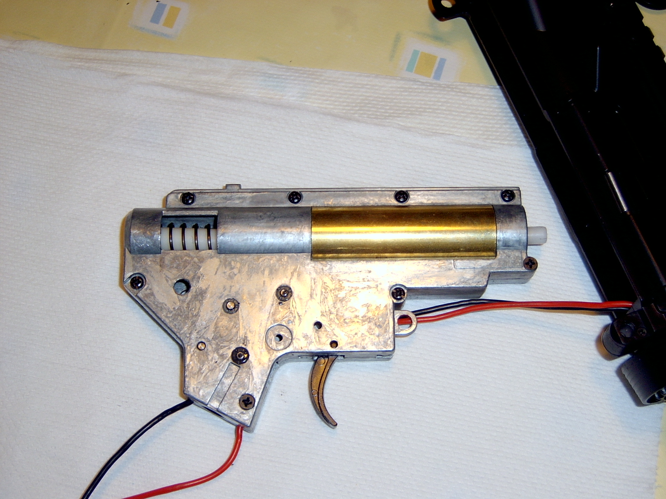 apro il gearbox e la prima cosa che noto è che il cilindro non è forato (sbaglio o la canna di un m4 dovrebbe essere abbinata ad un cilindro con foro?).