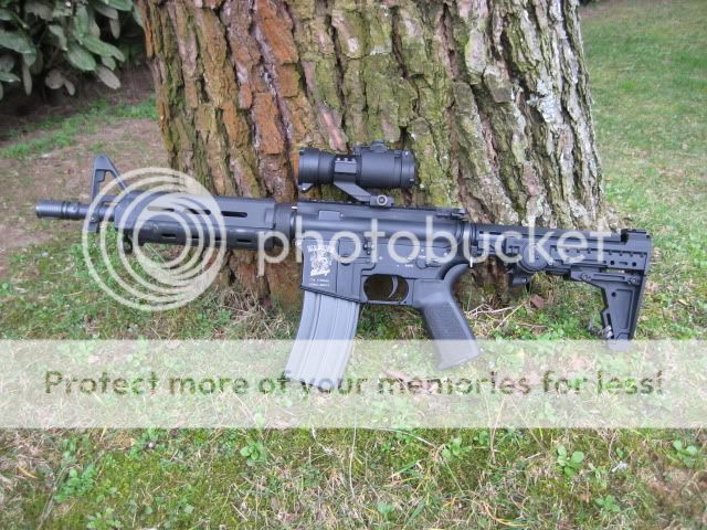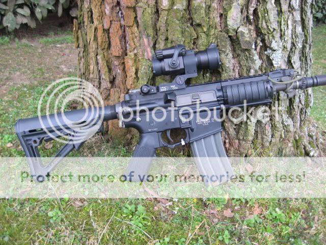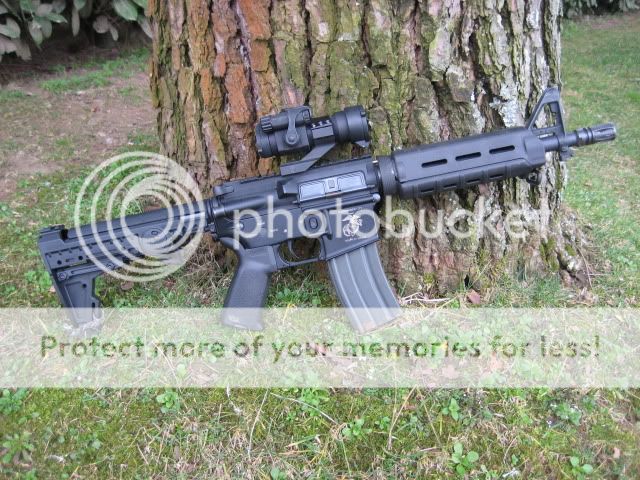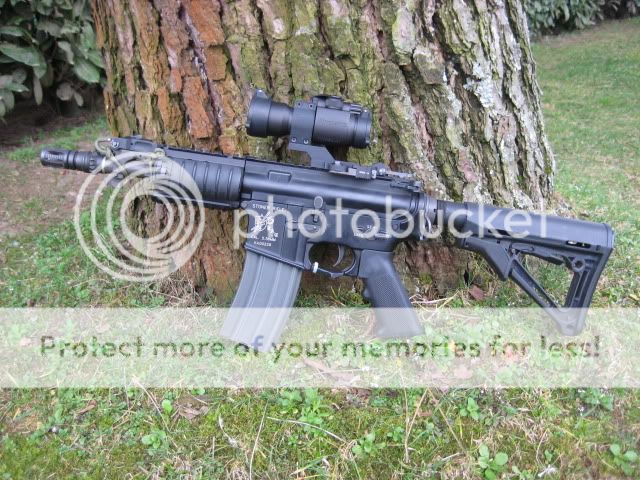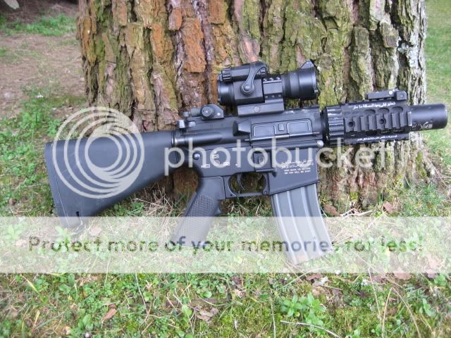 E' comunque work in progress, ha subito millemila cambiamenti, ora lo voglio fare RS, percui riceverà un calcio bushmaster con tappo in gomma (dato che uso le lipo nel tubo), gusci G&P con loghi armalite incisi e una bella 4X32 acog (ogni tanto gli monto quella sell'SR 25)