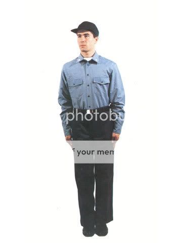jeans, camicia, cappellino blu con regolazione a velcro e scarpe tipo clark..(in inverno camicia con sopra maglione girocollo tipo carabiniere) e per i piu anzianissimi c era anche una giacchetta di jeans attillata (a cui ho messo sopra le mani negli ultimi 3 mesi di servizio)