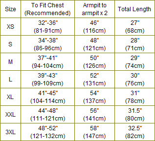 PS: ho trovato questa tabella che spero vi possa essere utile per la scelta della taglia: