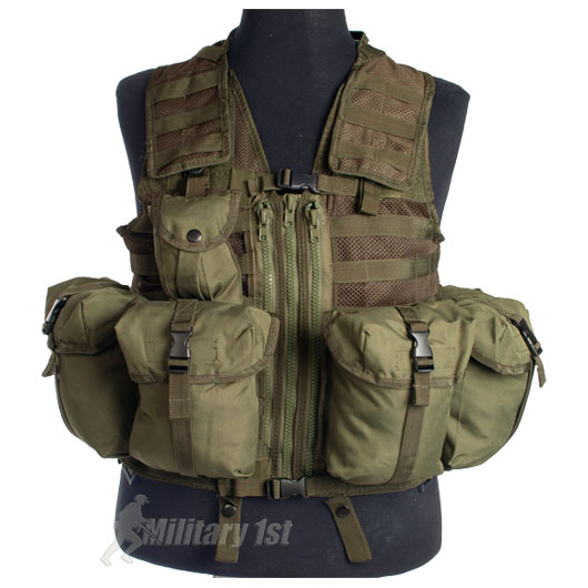 Meglio se ti orienti verso un MilTec di quelli semplici, cioè gilet interamente ricoperto da pals, sempre fatto a rete, così ci metti le tasche che vuoi (ha di serie molte tasche ma sono più che altro utility, ci stanno 2 caricatori G36 comodi ogniuna)