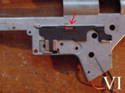 quando il selettore di tiro è su posizione di "singolo", la mollettina che si trova sul selector-plate spinge il cut-off in una certa posizione, e ciòè quasi a toccare l'asse del settoriale.