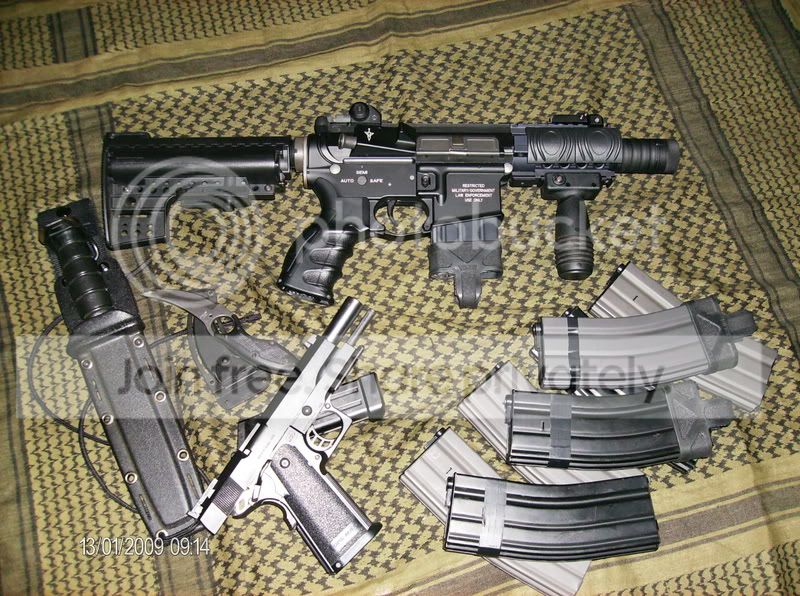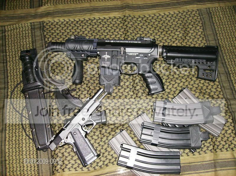 ciao, avevo un gb g&g in piu', ed ho assemblato questo. esternamente: gusci vltor k.a., calcio clubbfoot star, grip motore g16 k.a., ras corto con spegnifiamma tipo noveske k.a., tacche di mira stubby g&p. internamente come ho già scritto, gb g&g con cambio molla con una etabeta, cambio gruppo aria con un systema area1000, t hop up g&p con gommino e pressore madbull rosso, motore m120 high speed g&p. a voi i commenti.